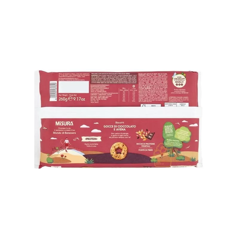 MISURA BISCOTTI PROTEIN CON GOCCE DI CIOCCOLATO E FIOCCHI D'AVENA 260GR