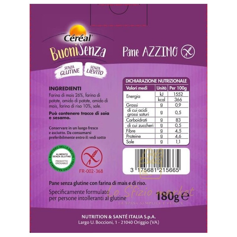 CEREAL BUONI SENZA PANE AZZIMO 180GR